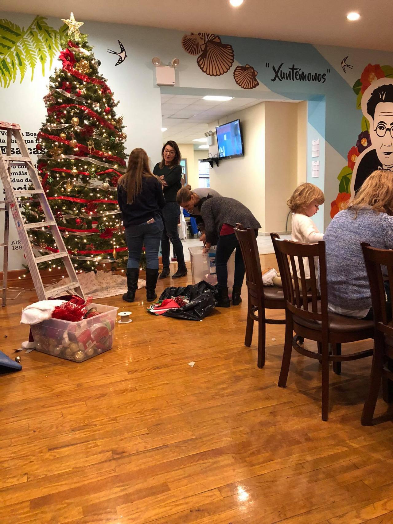 Preparando los adornos de Navidad en Casa Galicia